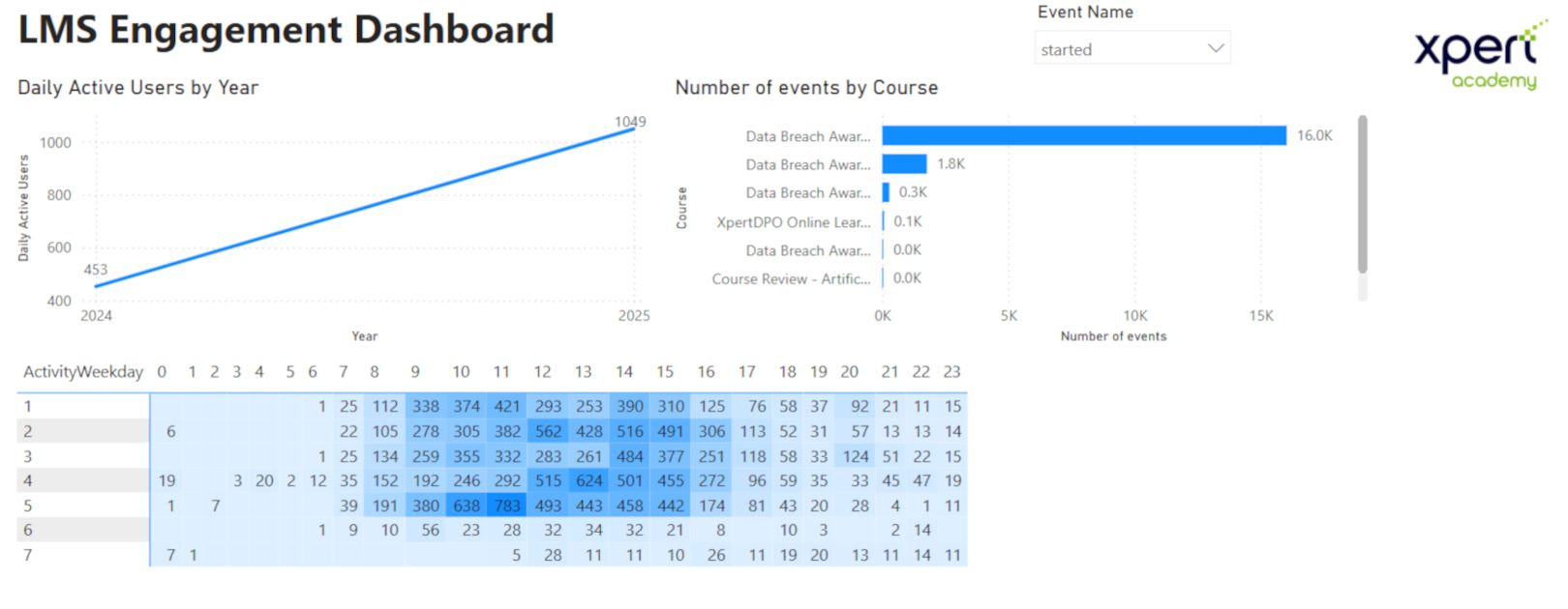 Yes. XpertAcademy includes client-specific dashboards (no third-party data risk) showing enrolments, completions, and learning gaps, filterable by course, team, or role. These dashboards help support audit evidence and team accountability.